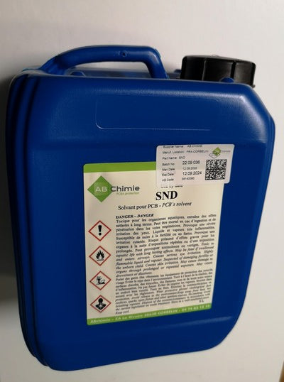 Le SND est particulièrement efficace pour le dévernissage des circuits électroniques. Il dissout rapidement le vernis et le silicone acrylique non cuits.